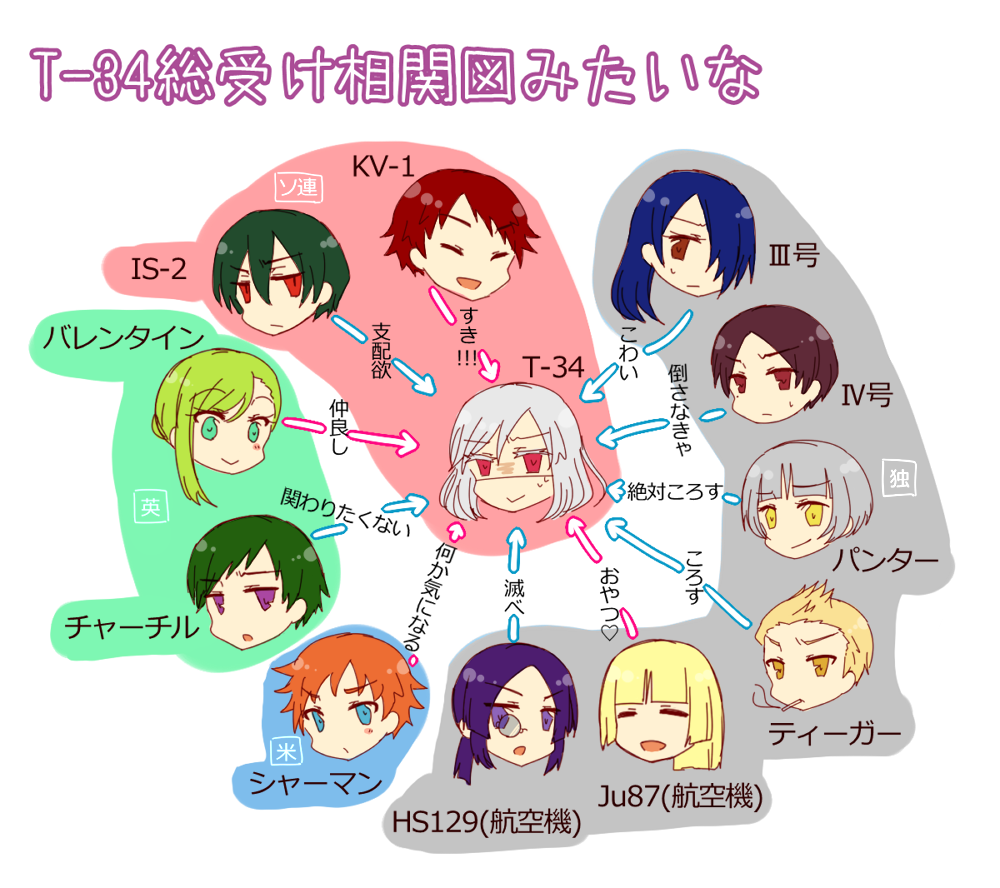 T-34を中心とした相関図を描きました。