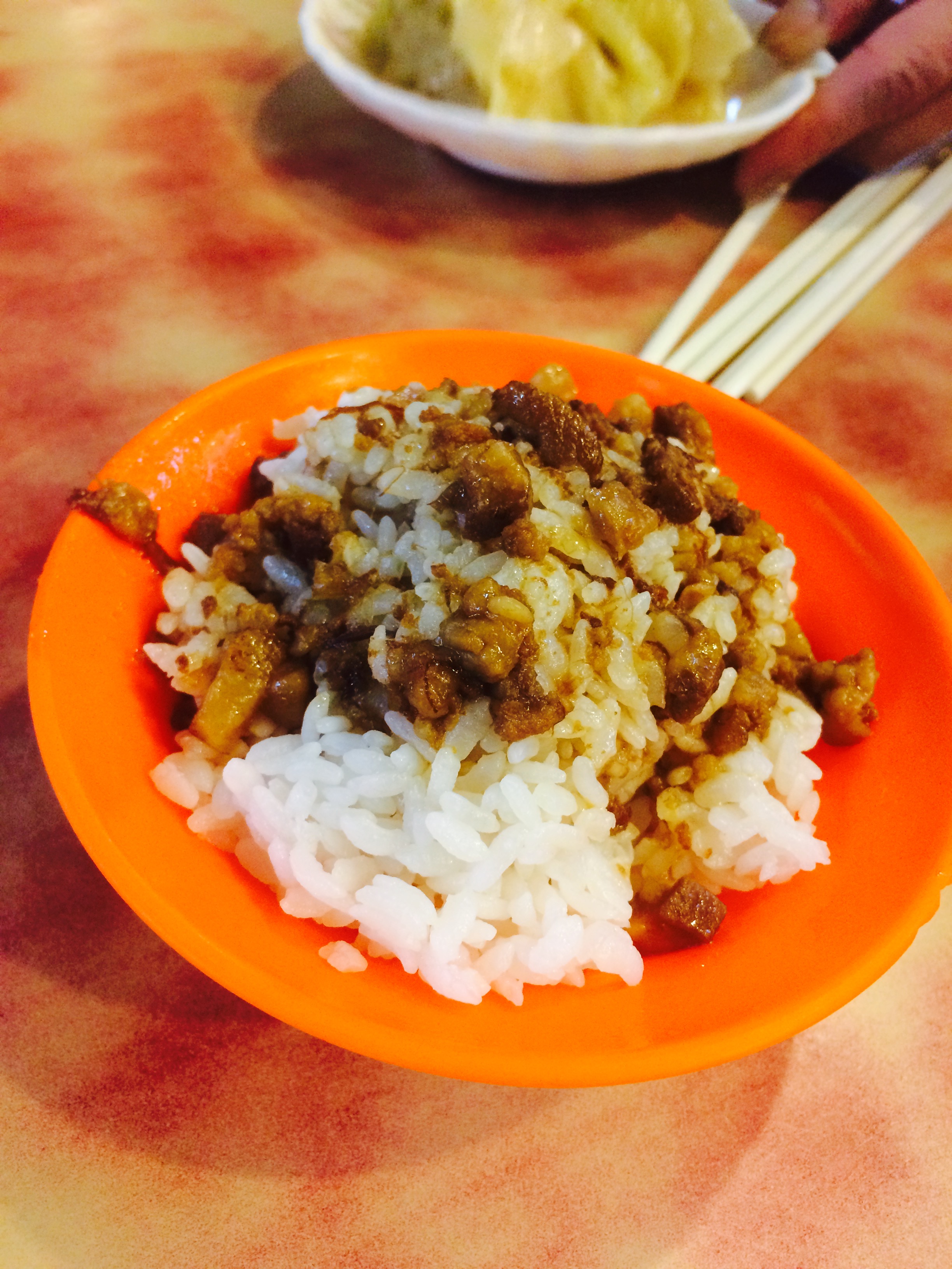 魯肉飯を食べました。細かく切って甘辛く煮込んだ豚肉がかけてあるご飯です。牛丼の豚版みたいな。まあまあ美味しかったです。