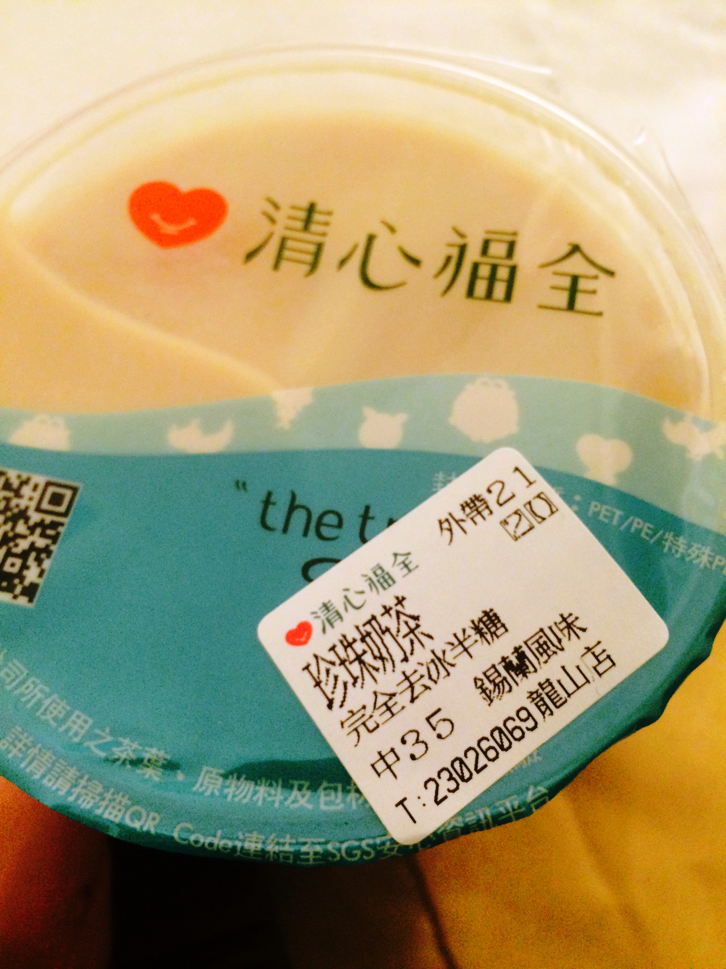 今回は画像のシールに「完全去冰半糖」とあるように、氷無し、砂糖は半分で。