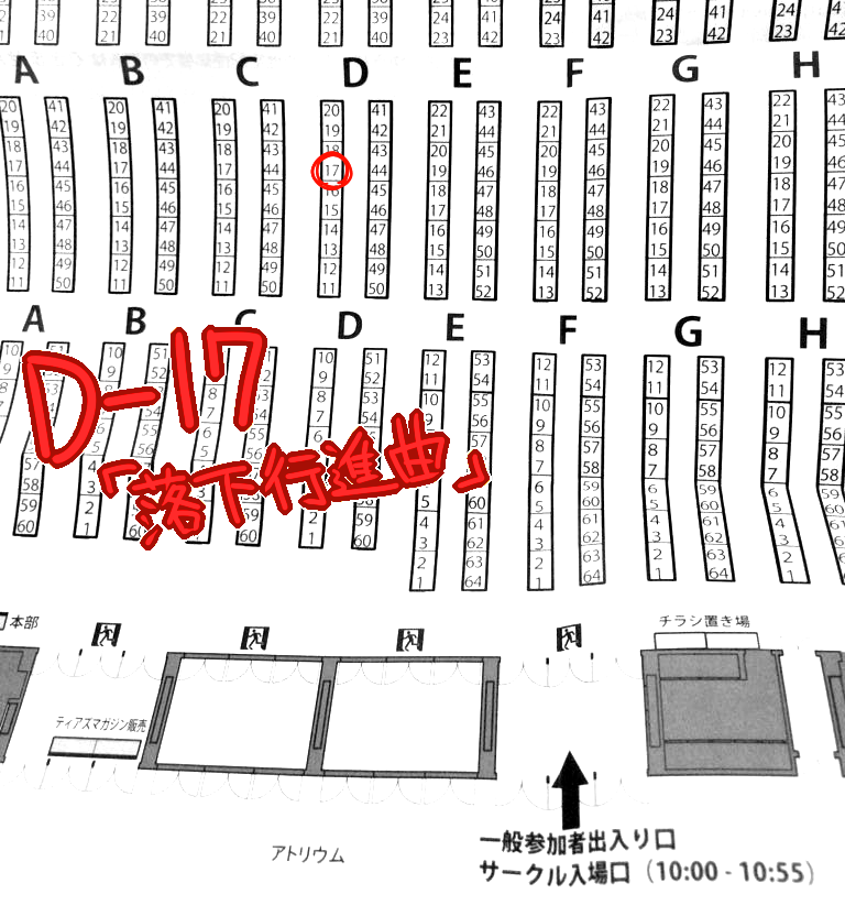 10月30日の名古屋コミティア49、スペースは【D-17】です。会場のほぼ真ん中です。